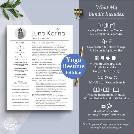 Yoga Instructor Resume Template | CV for Gym Trainer, Massage Therapist | Health and Wellness Resume